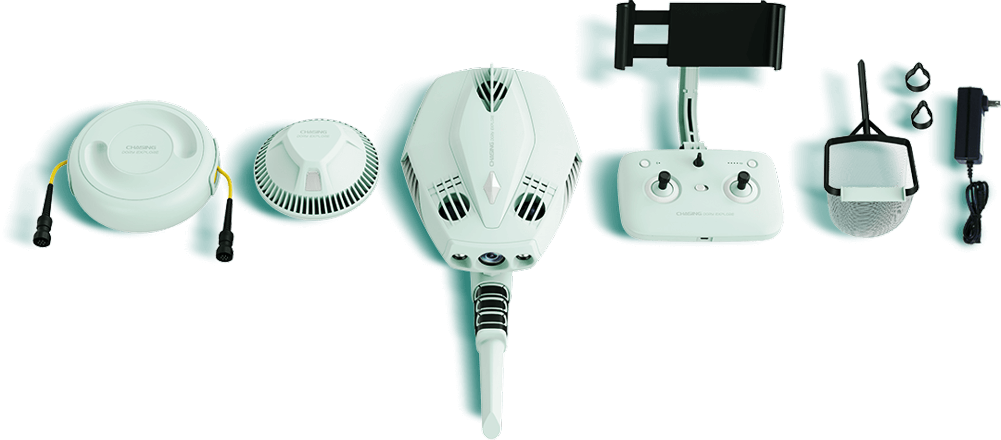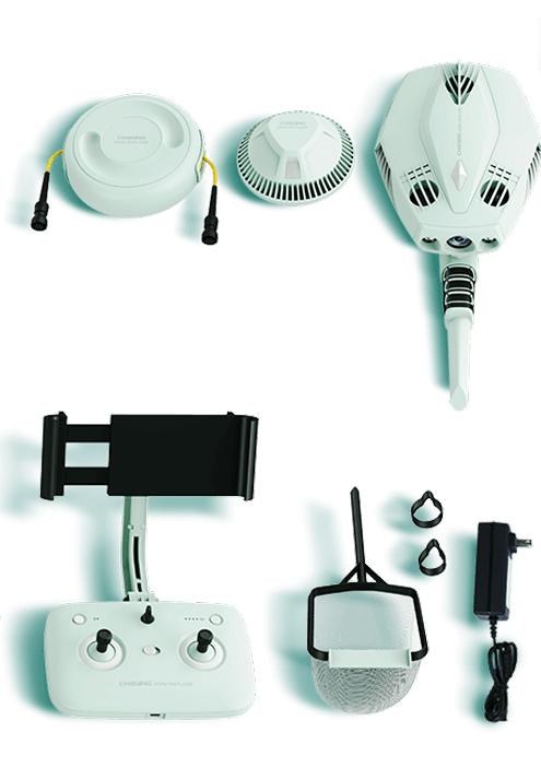 Dory Explore, Buoy, Winder (with buoyancy tether), Bluetooth Remote Controller, Metal Detector, Net, Adapter, Micro USB Cable